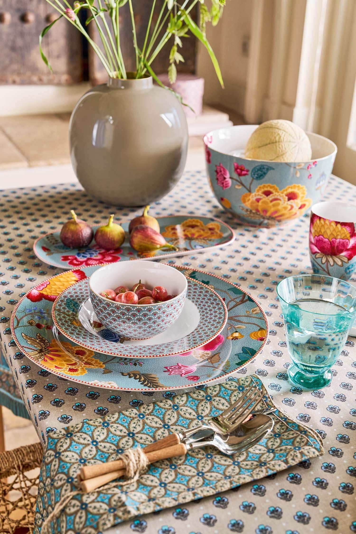 Discover the renewed Blooming Tales tableware collection an elegant reintroduction of a beloved classic. Featuring iconic floral designs in soft khaki and fresh blue. Perfectly designed for mixing and matching.