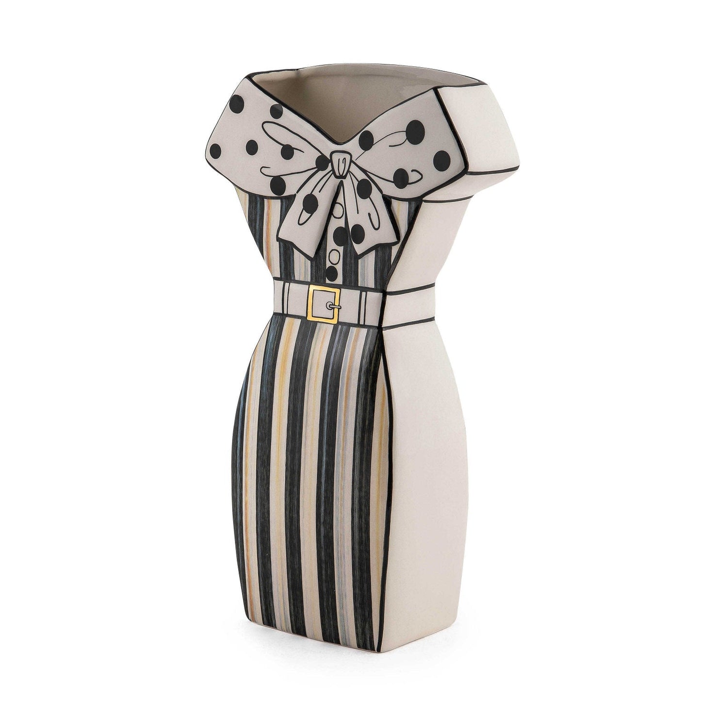 Flowers, fresh or everlasting, will be in full bloom with this whimsical, dress-shaped ceramic vase decorated with doodles and Courtly Stripe.