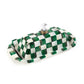 Heavy-gauge, hand-glazed steel with hand-painted Emerald Check decoration. Glass and brass accents. Pieces may vary due to the handmade nature of each product.