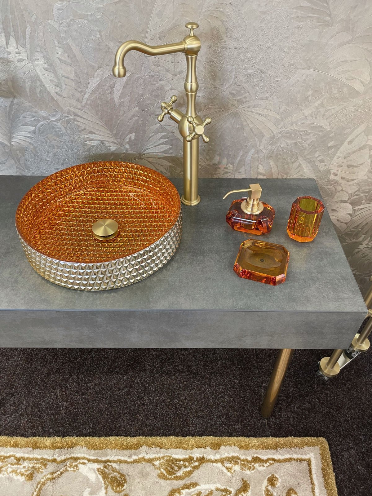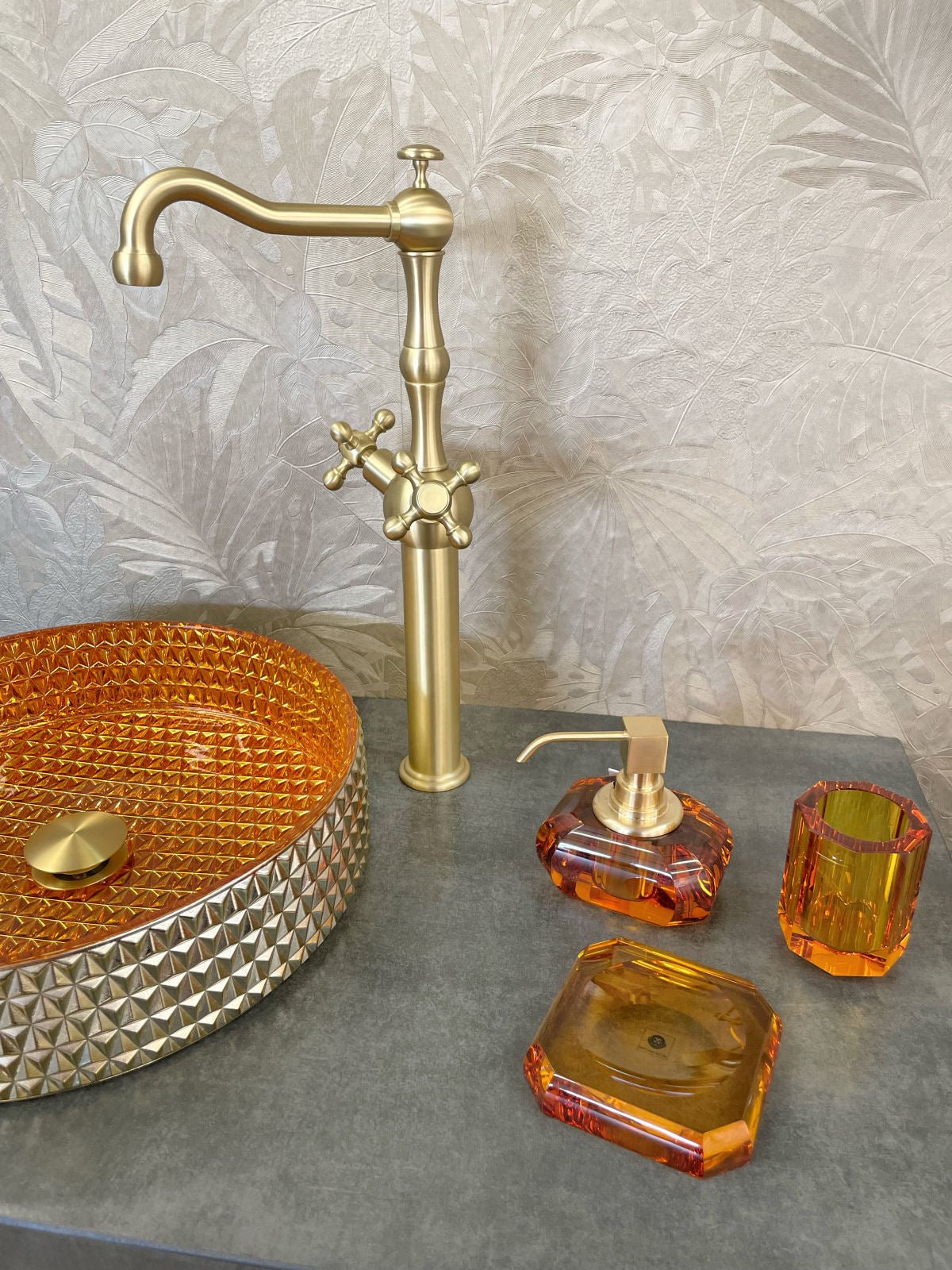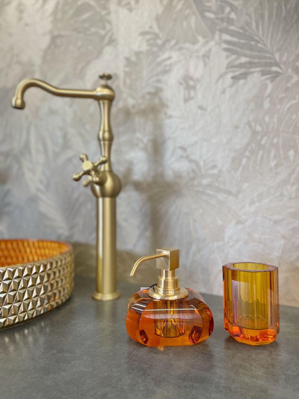 Luxury Amber Gold Crystal Glass Toothbrush Tumbler Holder