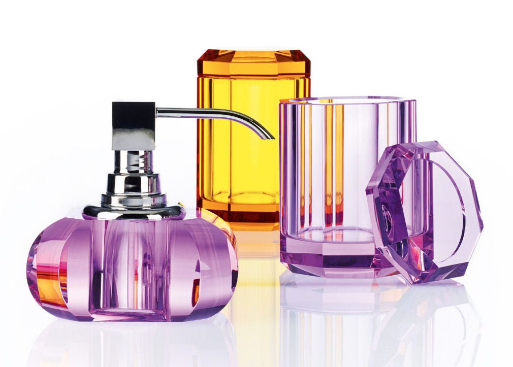 These accessories, crafted from stunning crystal glass, feature a timeless design that will add radiance to any bathroom.