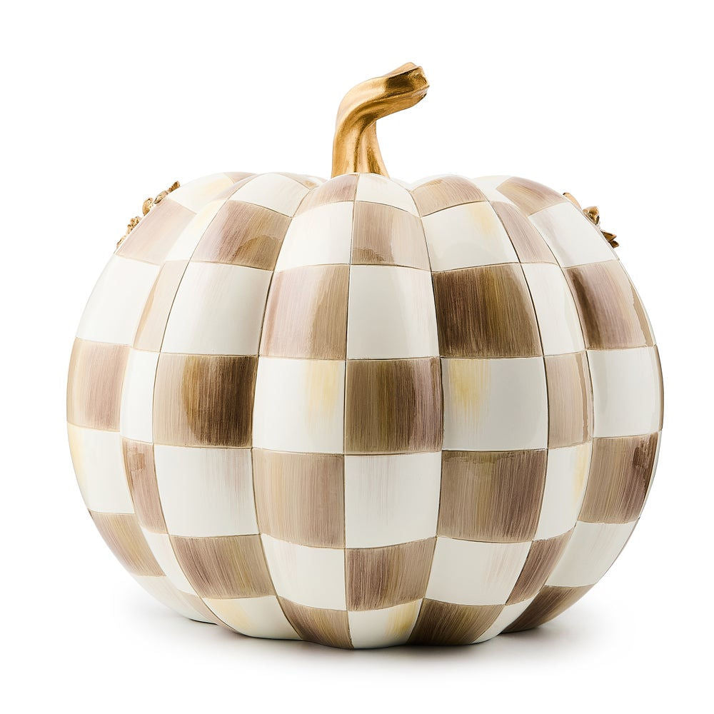 Mocha Check Floral Garland Pumpkin by MacKenzie-Childs