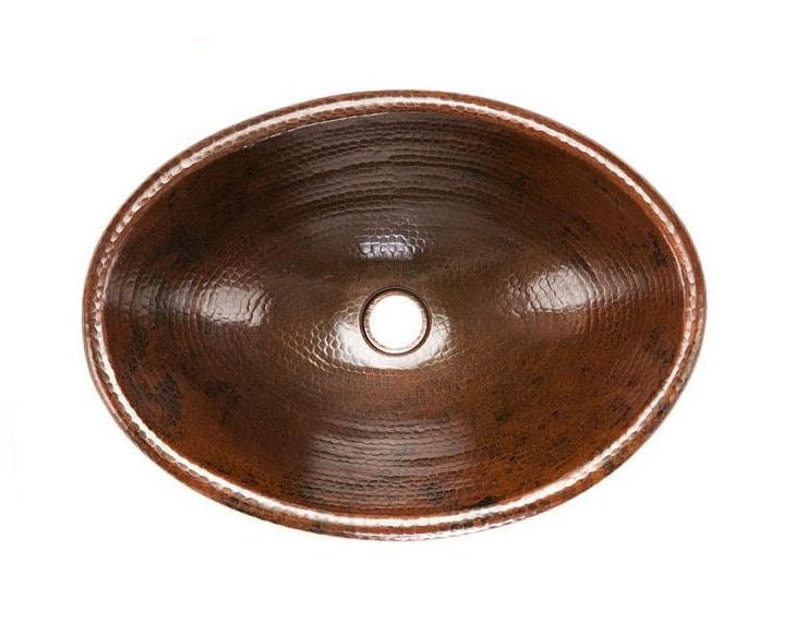 Drop in Oval Bathroom Hand Hammered Rustic Copper Sink