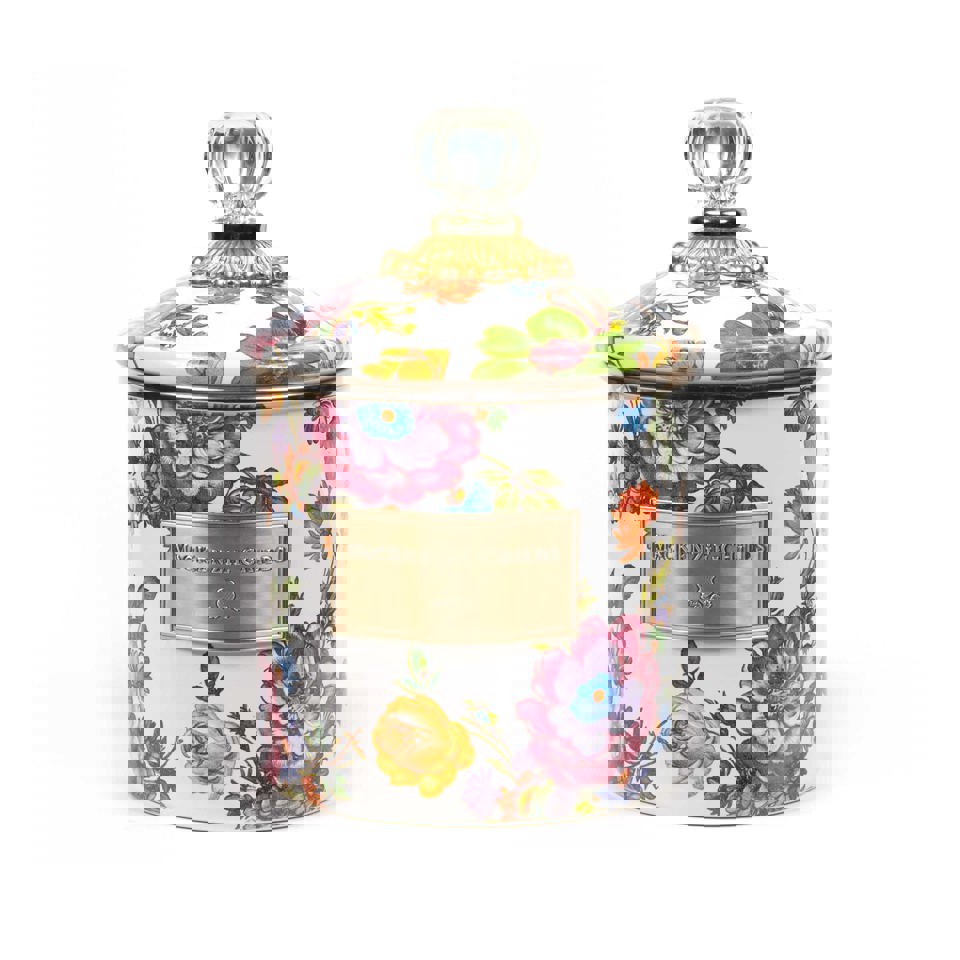 Color glazed in black, green or white, each Flower Market Enamel Canister is decorated with hand-applied fanciful botanical transfers that recall a lush English garden in the peak of summer. These canisters stand handsomely alone or harmonize delightfully in a multicolor set.