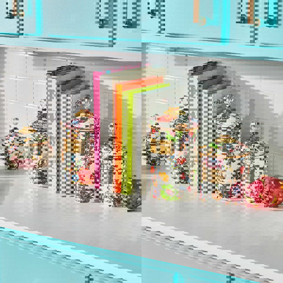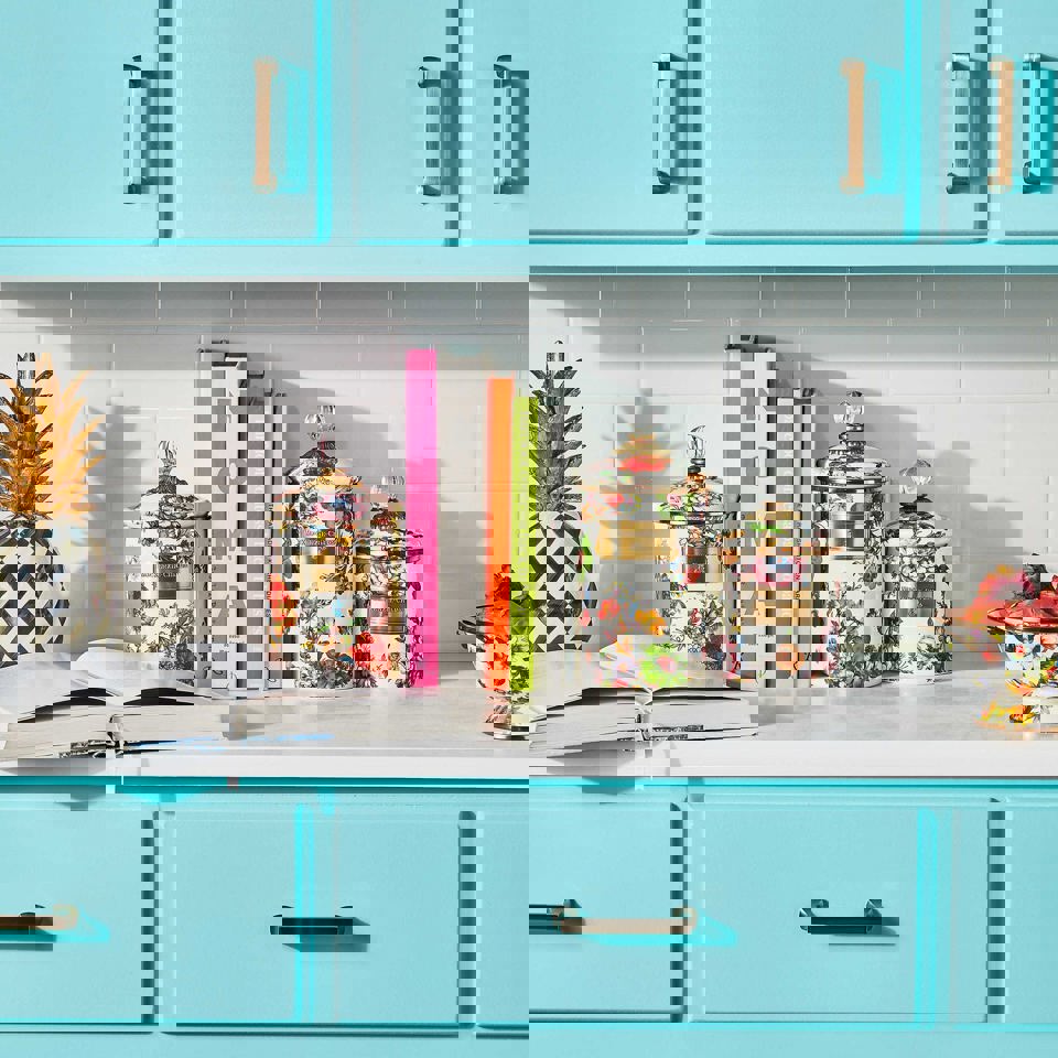 Flour, sugar, and coffee might seem the most obvious of contents with which to fill a set of three Flower Market Canisters, but the possibilities are endless!