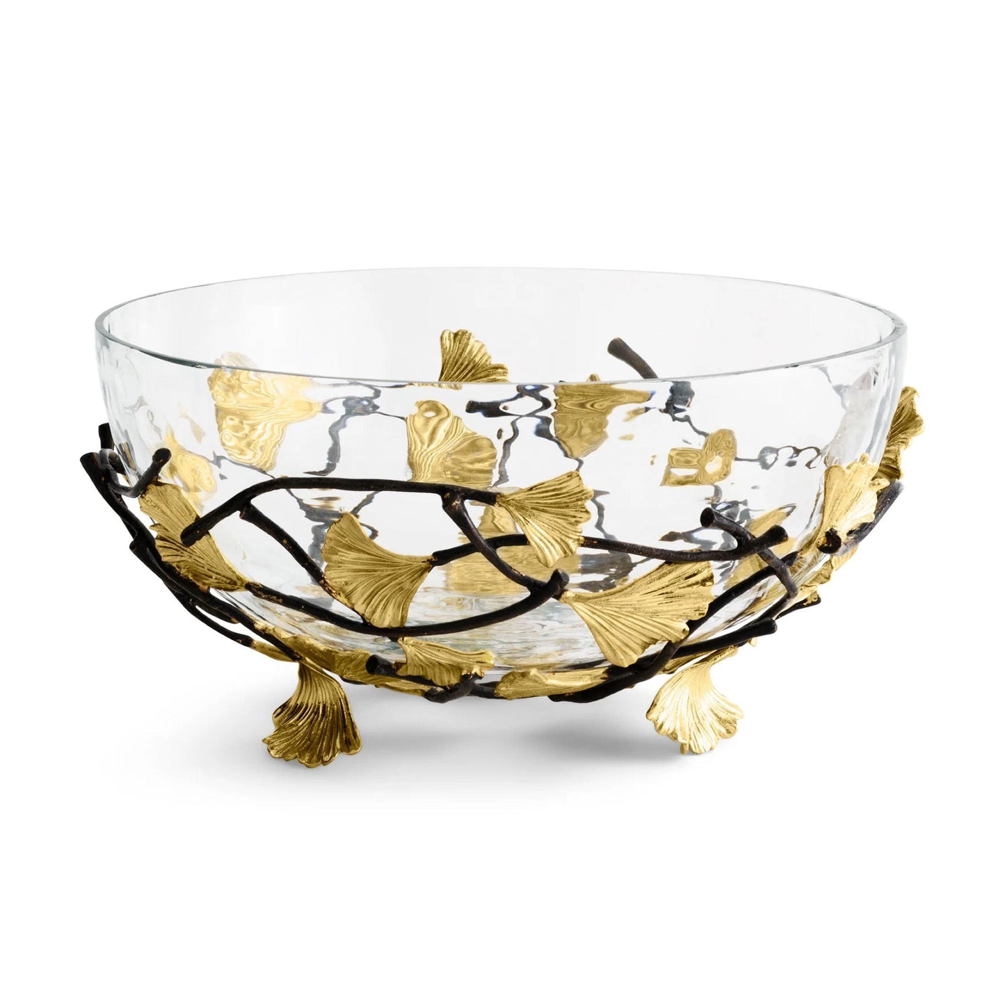 Golden Ginkgo Medium Glass Bowl by Michael Aram