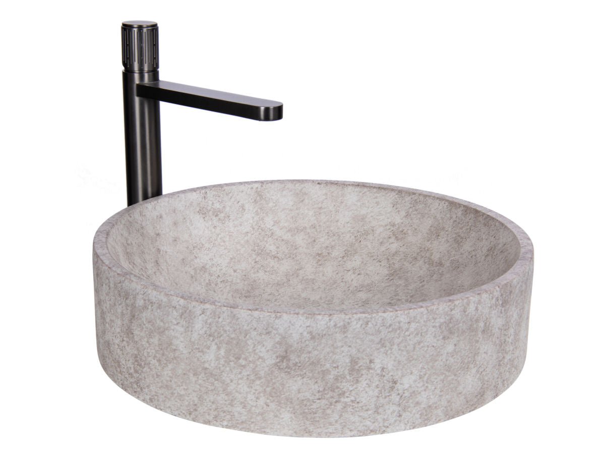 Natural Beige Skirted Concrete Bathroom Sink with Gun Metal Faucet