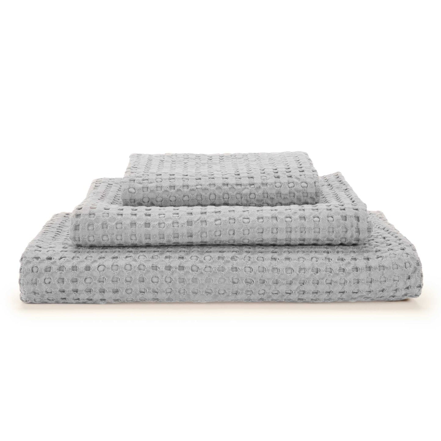 The unusual waffle design of the towels looks excellent not only in modern bathrooms but also in retro or country styles.