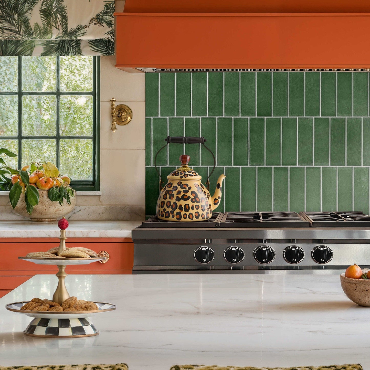 Suit your personali-tea with The Tea Kettle Collective. Go (a little) wild with the Spot On 2 Quart Tea Kettle, featuring animal spots on a heavy-gauge steel underbody, finished with a wood handle and an amber-colored glass knob on the lid. Each special-edition Collective kettle makes a great cup of tea, of course, and adds MacKenzie-Childs style to your stovetop. Don’t be surprised that you need more than one.