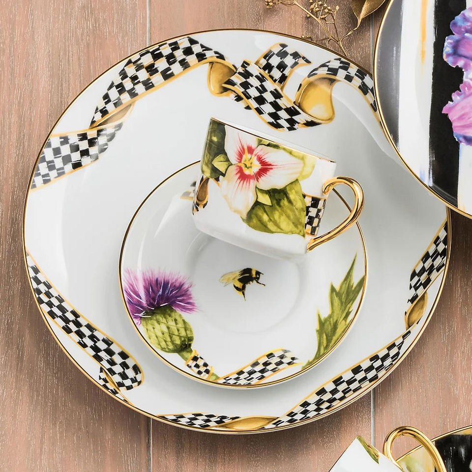 There's been quite a buzz about our take on formal china. Handcrafted in Portugal, the Thistle & Bee Dinner Plate Ribbon is framed with a Courtly Check ribbon decal and trimmed in gold lustre. A treat on its own, but even sweeter when paired with the complementary Garland Dinner Plate and the rest of the Thistle & Bee Collection.