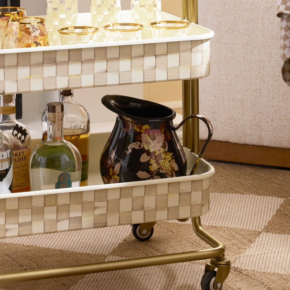 For ice water, fresh-squeezed lemonade, or punch, our bright and cheerful Wild Rose Brown Pitcher dresses up every tabletop. Beautiful on the dinner table filled with a refreshing beverage, or as a centerpiece brimming with fresh cut flowers. The heavy-gauge steel underbody is decorated with hand-applied floral transfers that pair perfectly with Mocha and Rosy Checks.