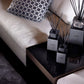 The bottles are made of hand-painted black matt glass and the lid is made of ashwood. The highly prestigious version with a Portoro marble stopper–from the“Rare Lids Collection"–is only available for the 2.5l bottle.