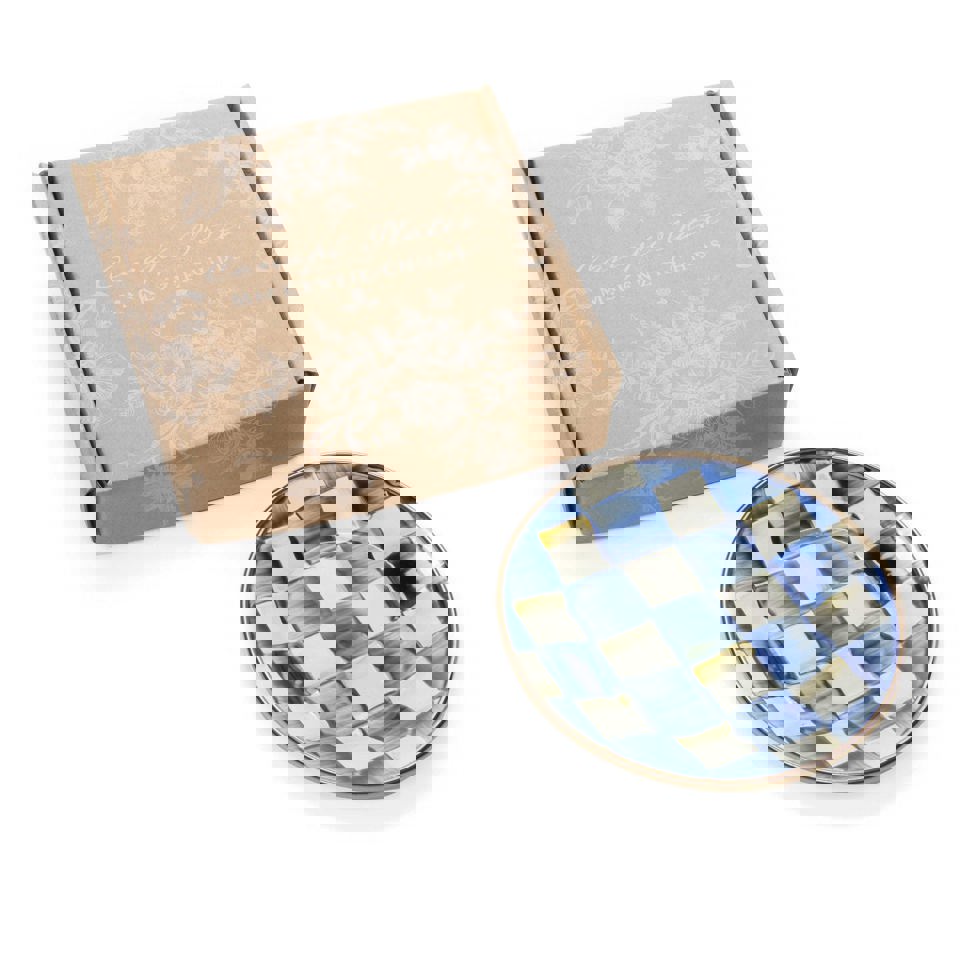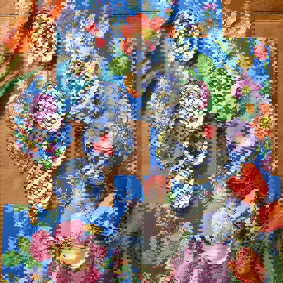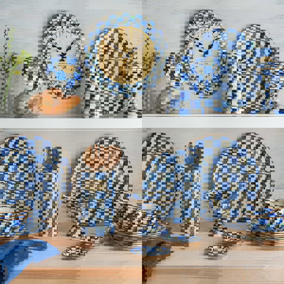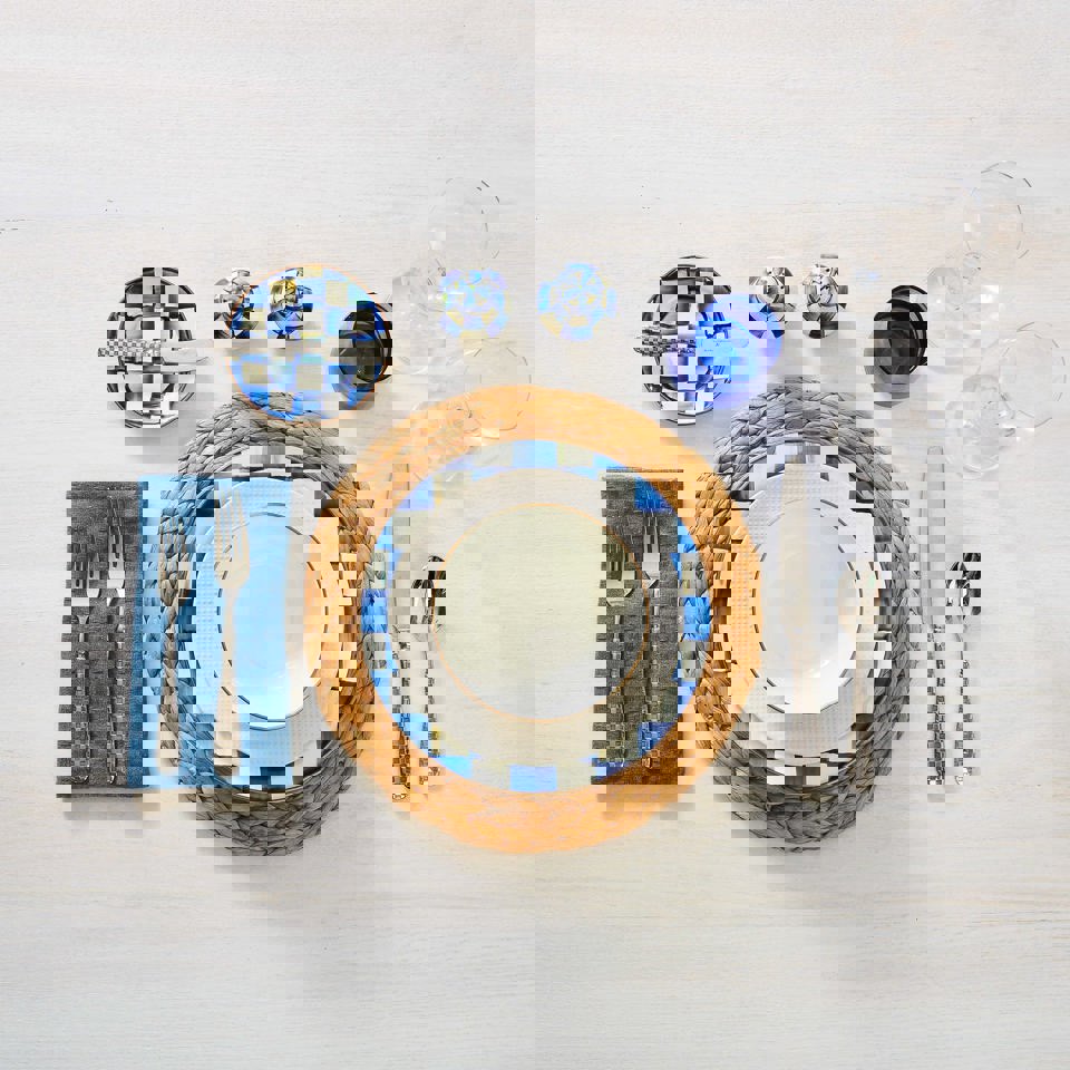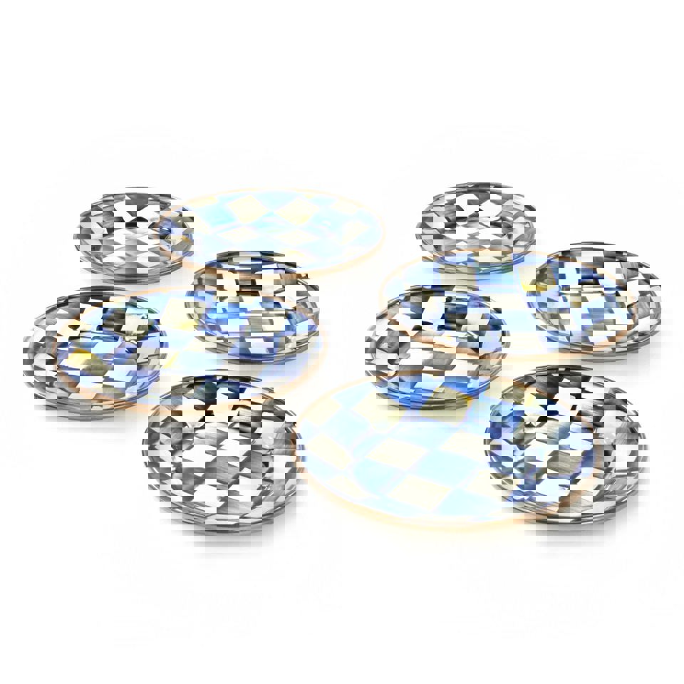 Tapas? Noshes? Tasty treats? The slightly smaller silhouette of the set of four Royal Check Appetizer Plates offers warm, inviting, high-contrast glossy blue checks, hand-painted in a range of blue hues.