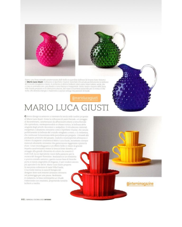About Mario Luca Giusti: After stints as a fashion designer and book publisher, Mario Luca launched his eponymous line of home accessories in 2005. The pieces - all of which are designed by Mario himself - were instant successes worldwide. Using a style between fusion in pop, they are inspired by nature, art, and architecture. Celebrity customers include Steven Spielberg, Prince Albert II and Charlene of Monaco, Roberto and Eva Cavalli, the Missoni family, and the JK Place Capri."