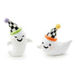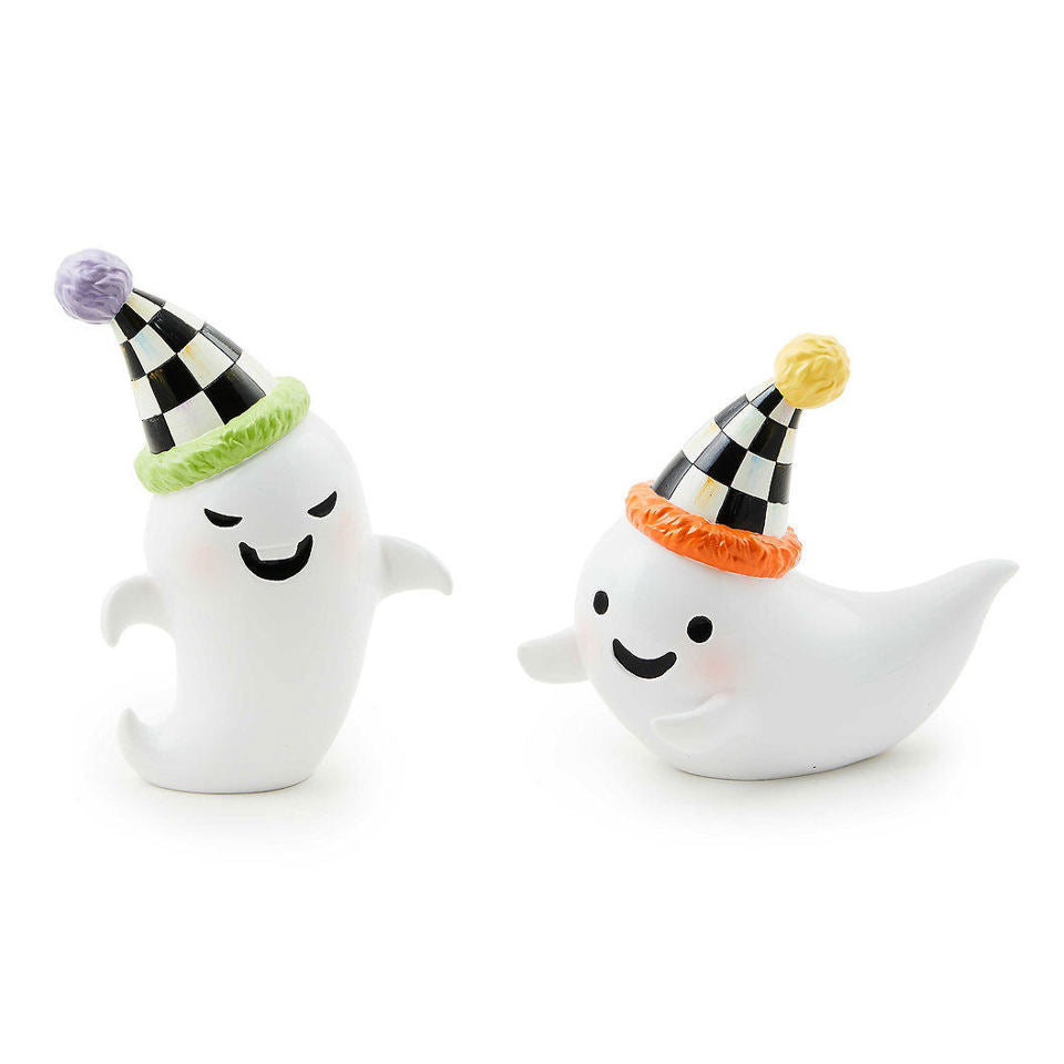 Celebrate the sweetness of trick-or-treating with this set of two molded friendly ghosts that are accented with Courtly Check® caps.