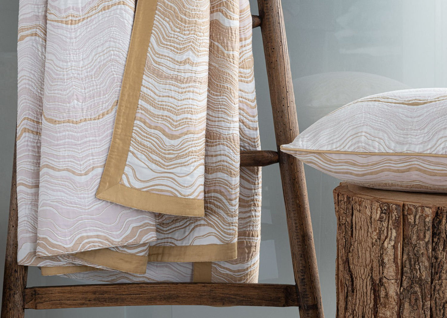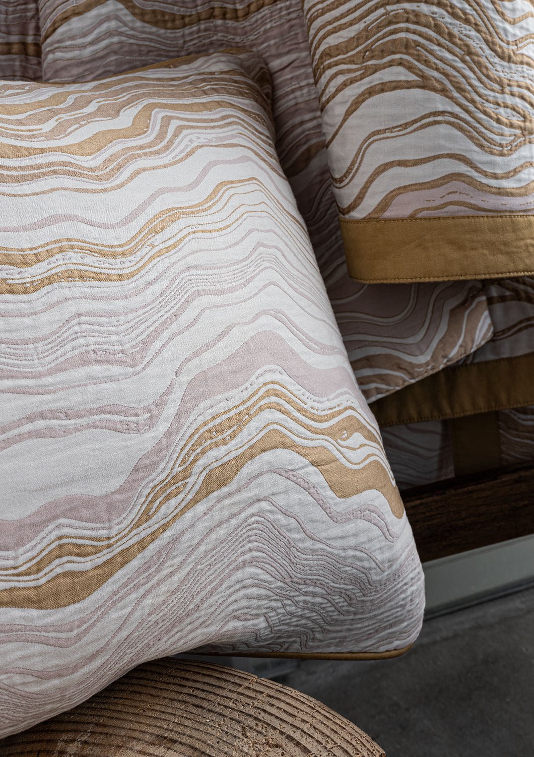 ELS Giza Egyptian cotton combined with a 30% silk content to the visual effect. Piped shams are also available.