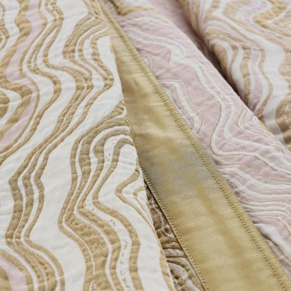 A pattern like rolling sand dunes, warming up in the desert, with soft shades of pink and sand, freshly painted in the morning light.
