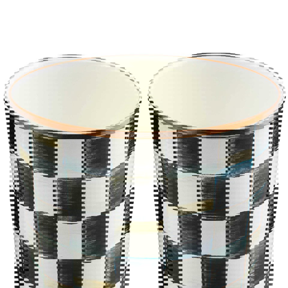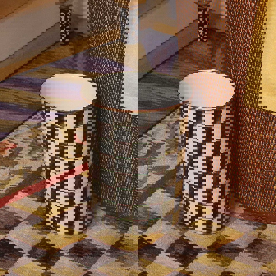 Our Courtly Check® Enamel Waste Bin makes it easy to view trash as treasure. If you decide this one’s too pretty for discarded papers, try it for storing flip flops, knitting, tennis balls, magazines, fresh flowers or as a planter for a fern. With a subtle jewel-tone palette woven by an artisan’s brush through the glossy, hand-painted, high-contrast checks, we’ve yet to find a room that doesn’t look good with Courtly Check.