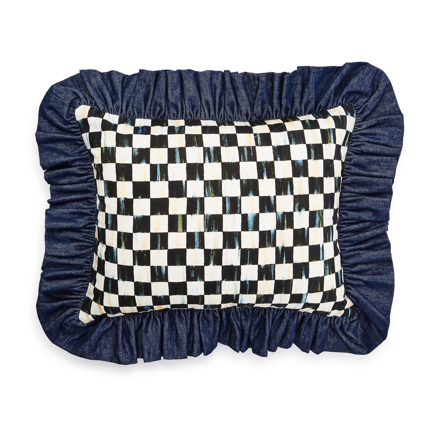 Courtly Check With Denim Ruffle Lumbar Throw Pillow by MacKenzie-Childs