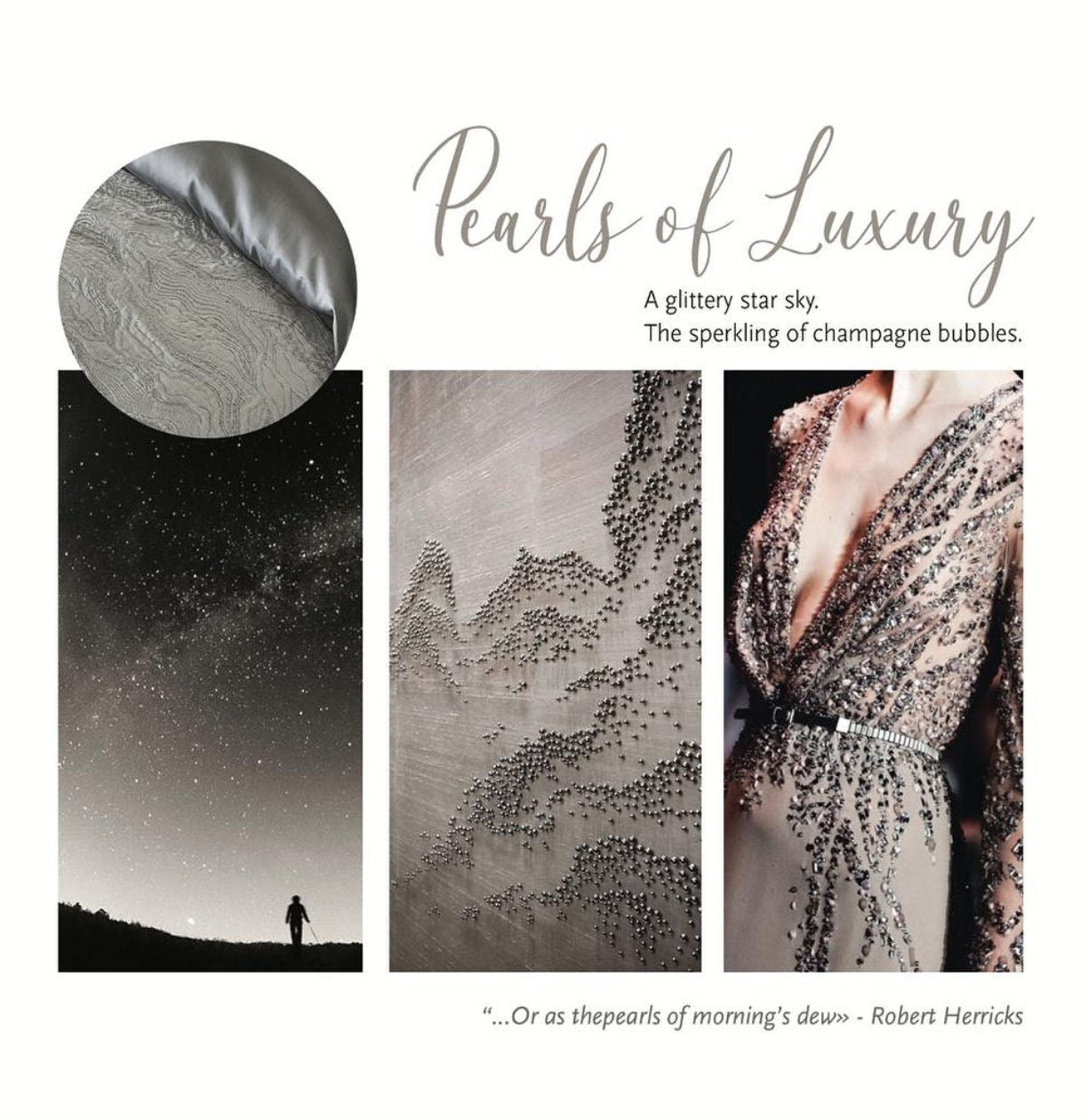 The Perle bed cover collection from Celso de Lemos is enchanting and glamorous. Drawing inspiration from the sparkle of champagne bubbles and the allure of a starry sky, this collection captures the essence of luxury and elegance. The addition of lurex to the bed cover and matching shams is a key element in creating the special shine of the Perle collection. This captivating collection is available in two colors.