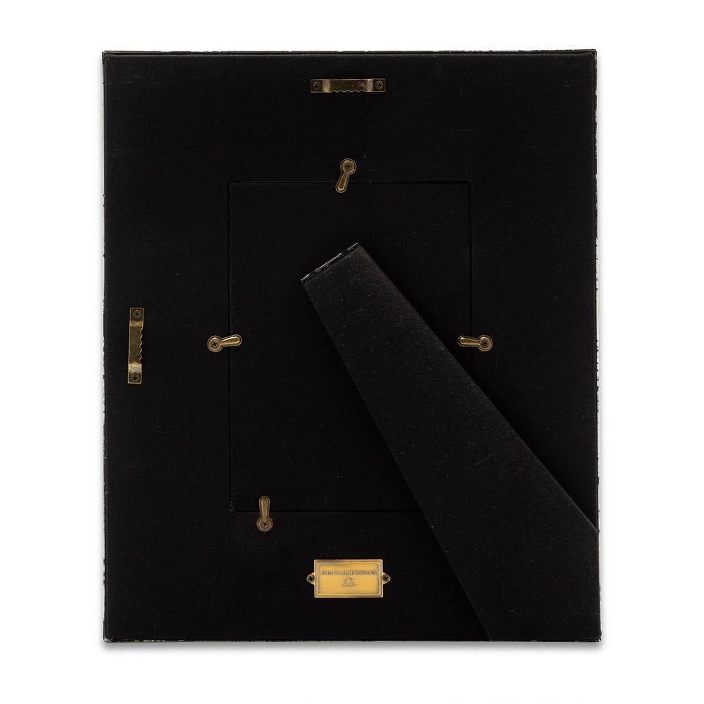 Heavy-gauge, hand-glazed steel underbody with hand-painted Mocha Checks. Glass pane. Easel back included; backing is covered with linen and a brass logo plate. Pieces may vary due to the handmade nature of each product.