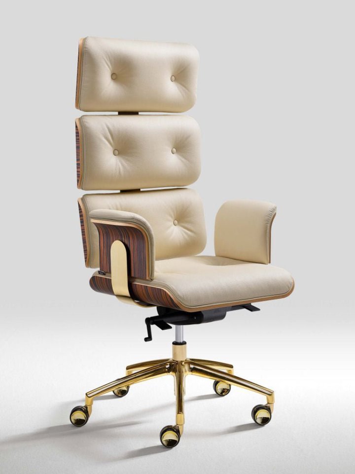 Armadillo Luxury 24K Gold Plated Office Armchair with High Back / Genuine Italian Leather