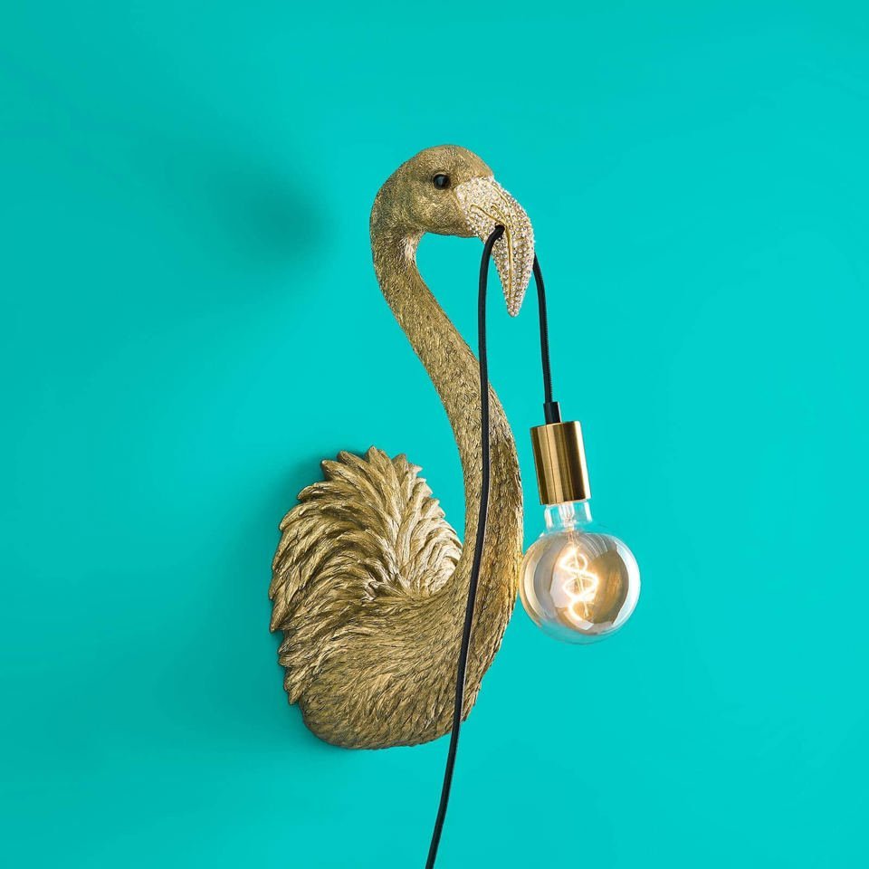 Baby Flamingo Tiffany Wall Lamp, Gold