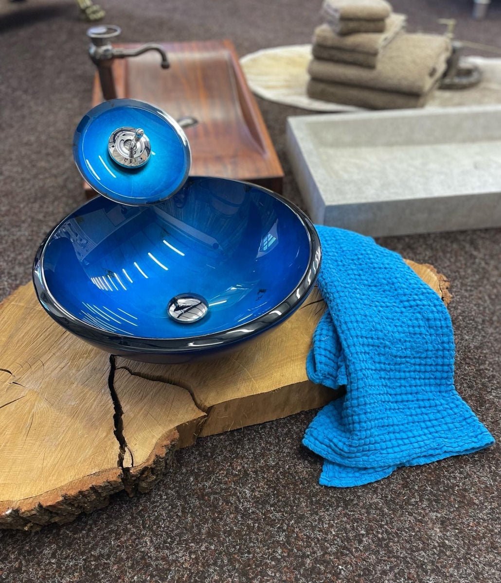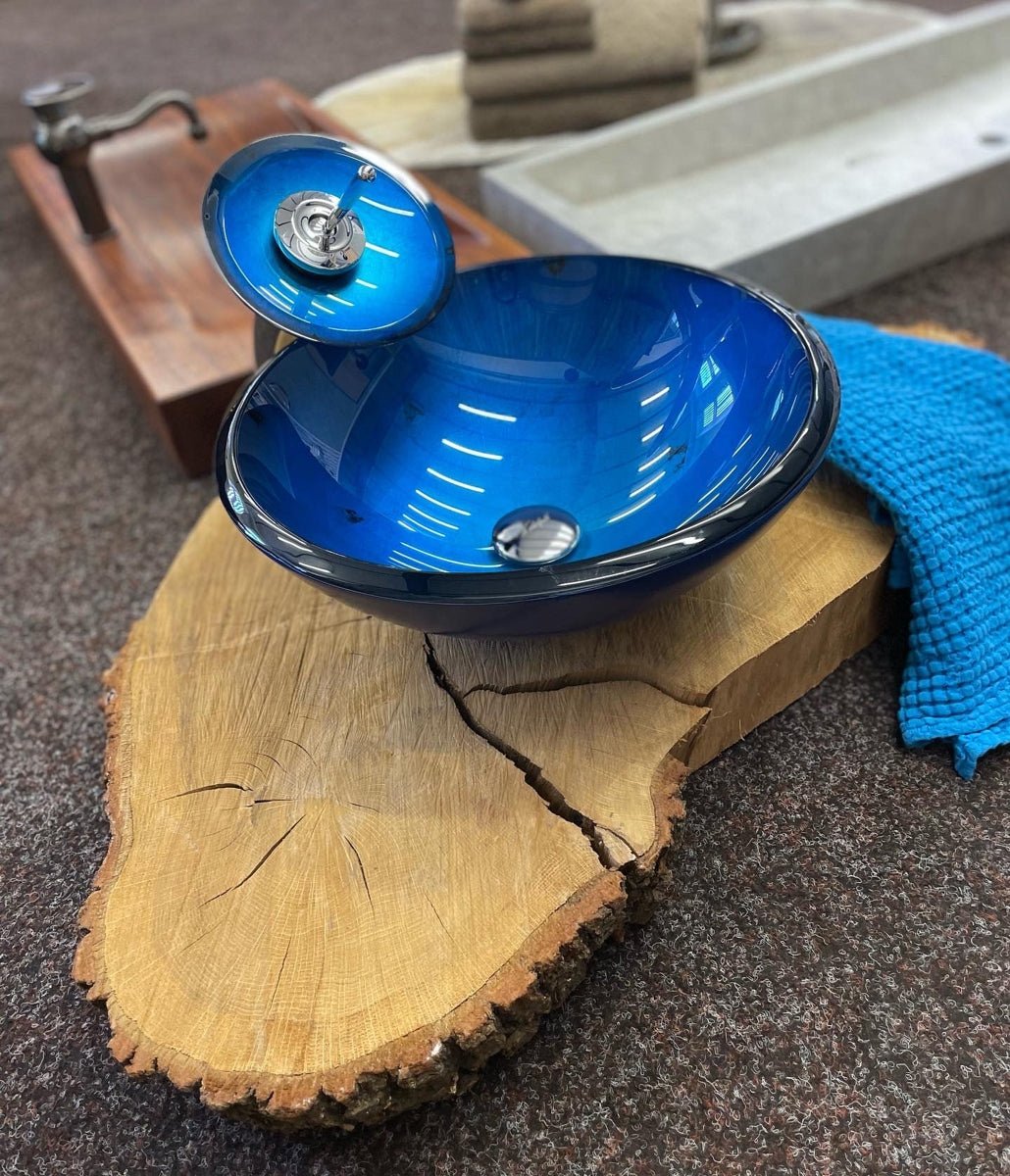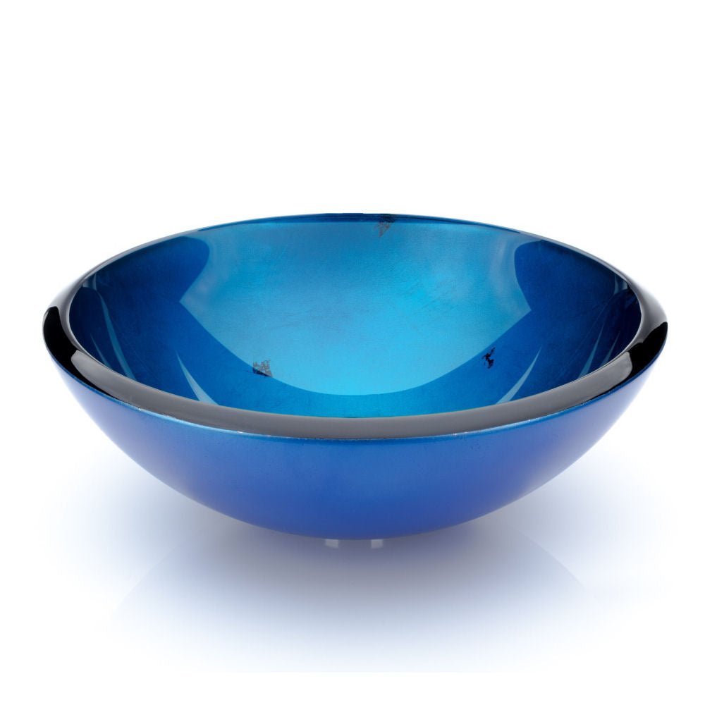 Blue Leaf Round Bathroom Glass Vessel Sink 19mm