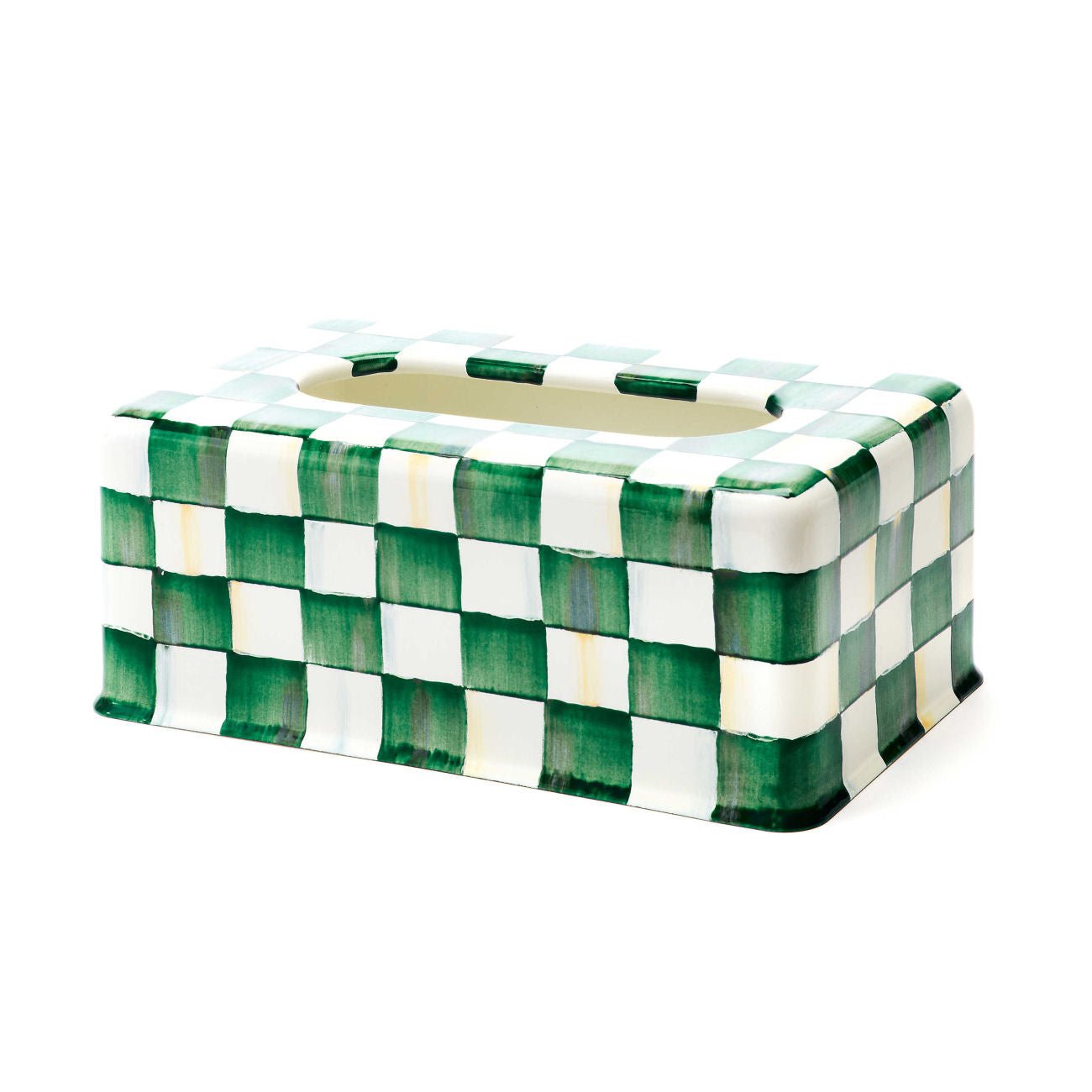 Be prepared for every sneeze or sniffle! Keep an Emerald Check Standard Tissue Box Cover within reach in the powder room, bedroom, and guest room. The simple elegance of our hand-painted green check pattern adds style to a household staple.