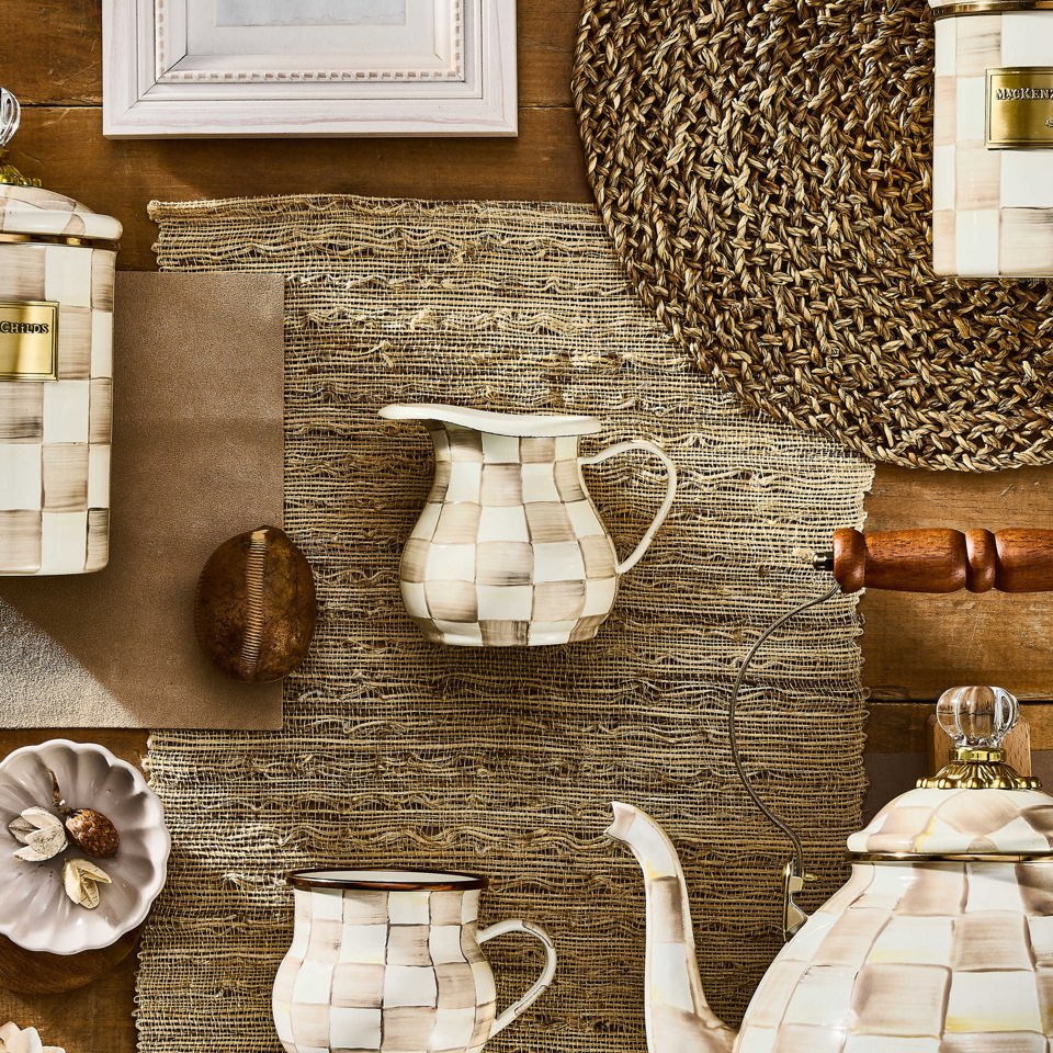 The Mocha Check Creamer is the perfect way to energize your morning cup of joe. Take your coffee black? Don’t fret—this versatile enamel vessel invites countless uses—from hot fudge to spaghetti sauce to homemade herb vinaigrette. The heavy-gauge steel underbody is glazed with hand-painted, coffee-colored checks.