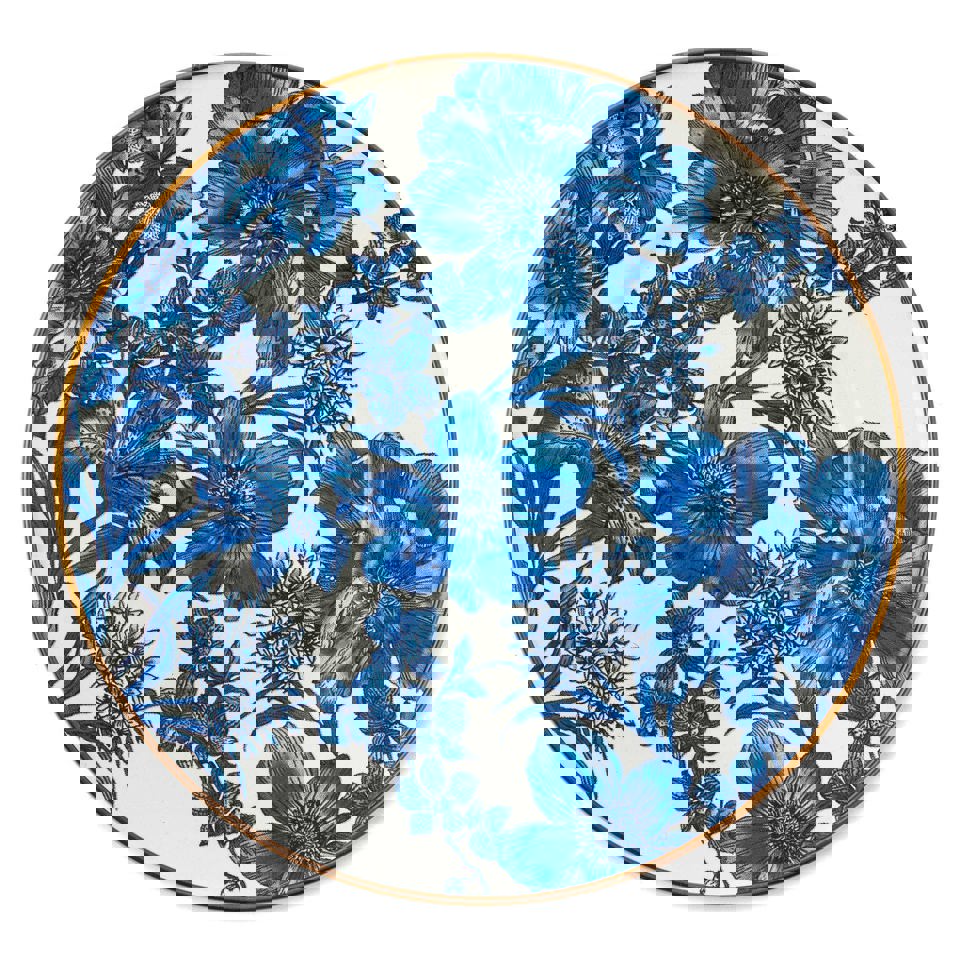 Serve your favorite dishes in style with this blue floral enamel salad/dessert plate.