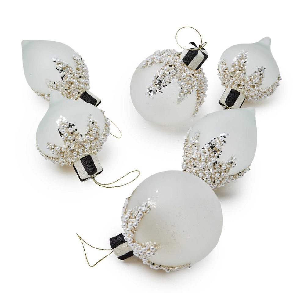Crystal Palace Pearl Assorted Glass Ornaments, Set of 6