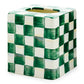 Be prepared for every sneeze or sniffle! Keep an Emerald Check Boutique Tissue Box Cover within reach in the powder room, bedroom, and guest room. The simple elegance of our hand-painted green check pattern adds style to a household staple.