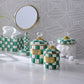 Add to the endless possibilities for our canisters with the Emerald Check Demi Canister. A step up from our smallest sized canister, the Demi stands handsomely alone or harmonizes delightfully in a set. Keep it in the kitchen or invent new uses around the house. Each enameled steel canister is hand-painted with green checks and topped with a clear glass knob.