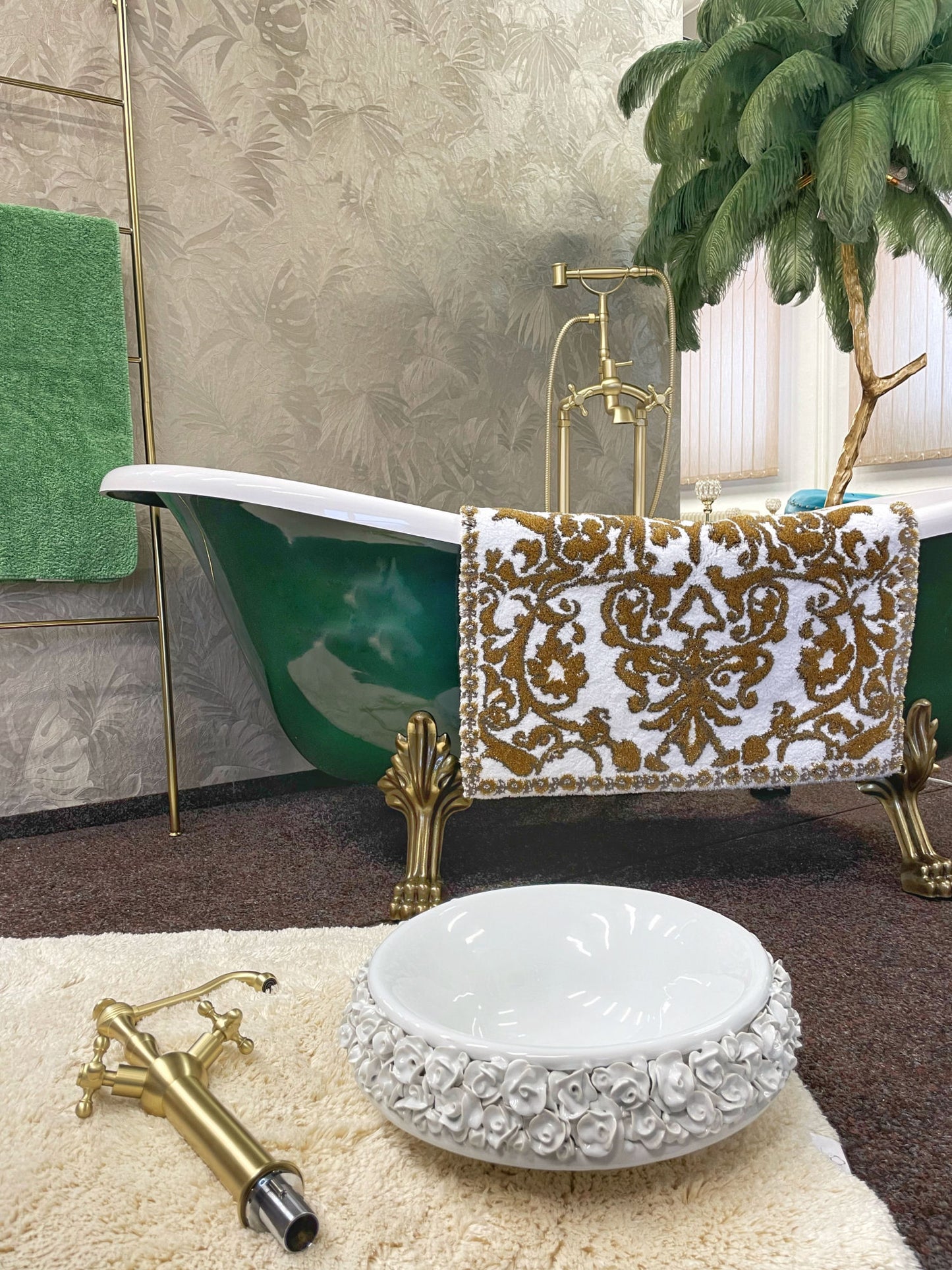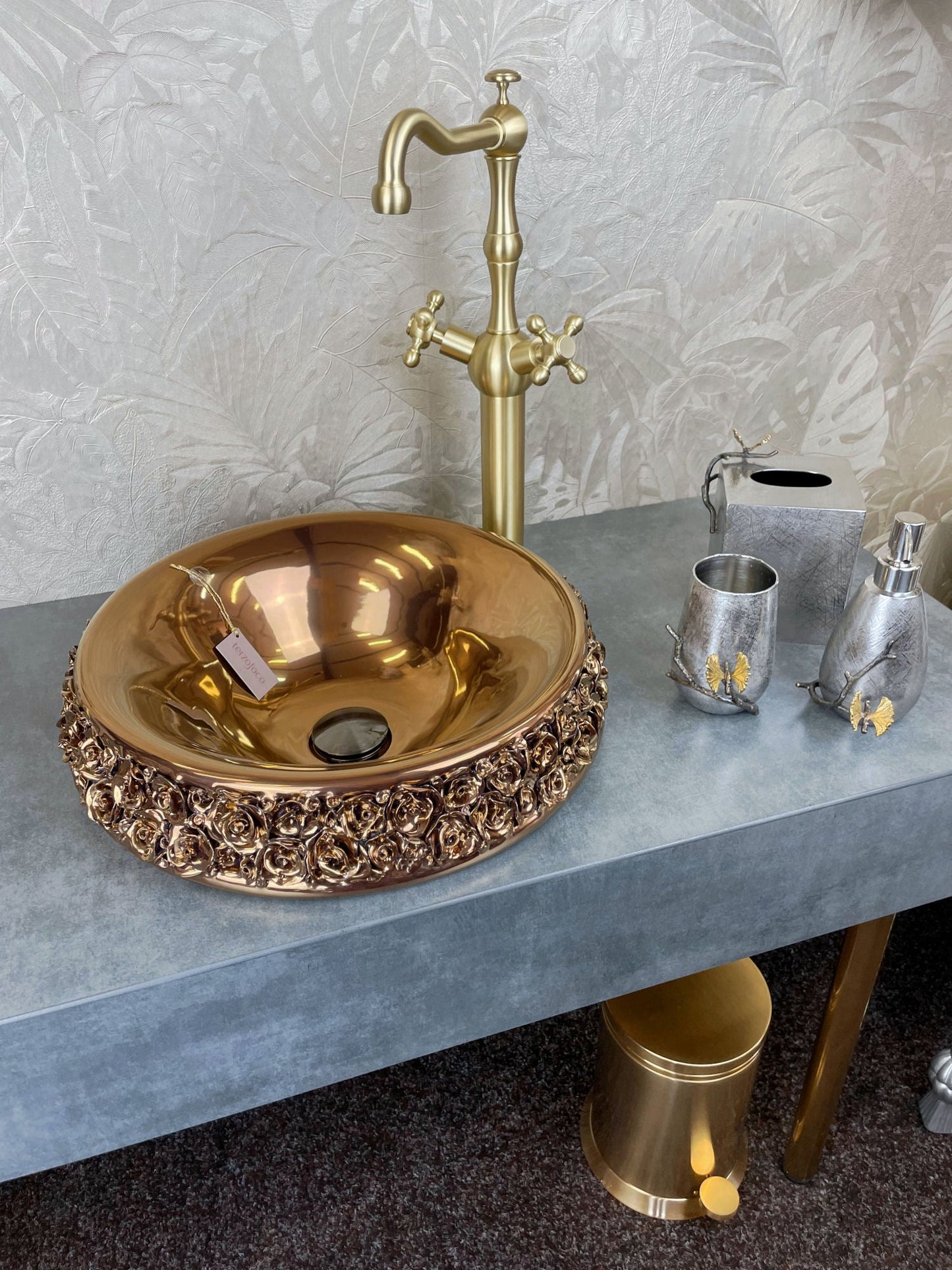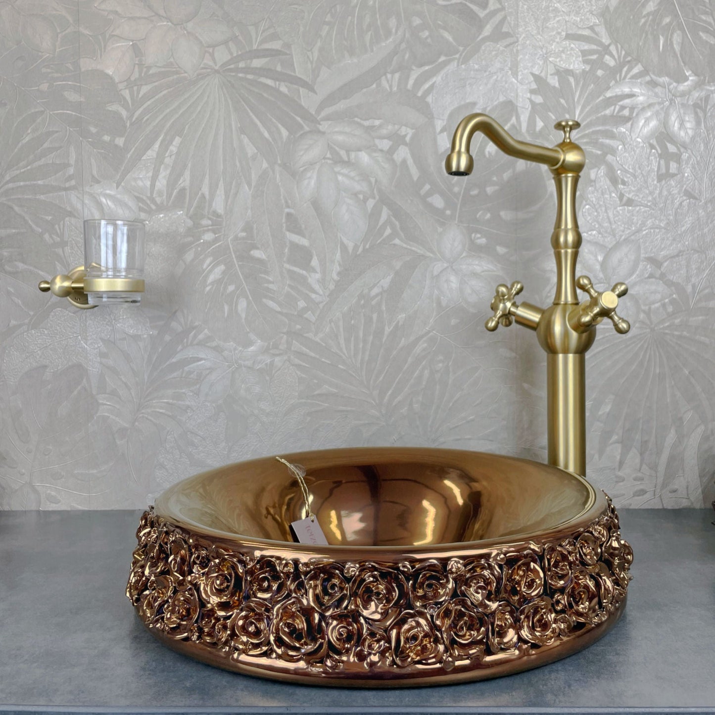 Italian Handmade Porcelain Bouquet Sink with Champagne Gold Faucet