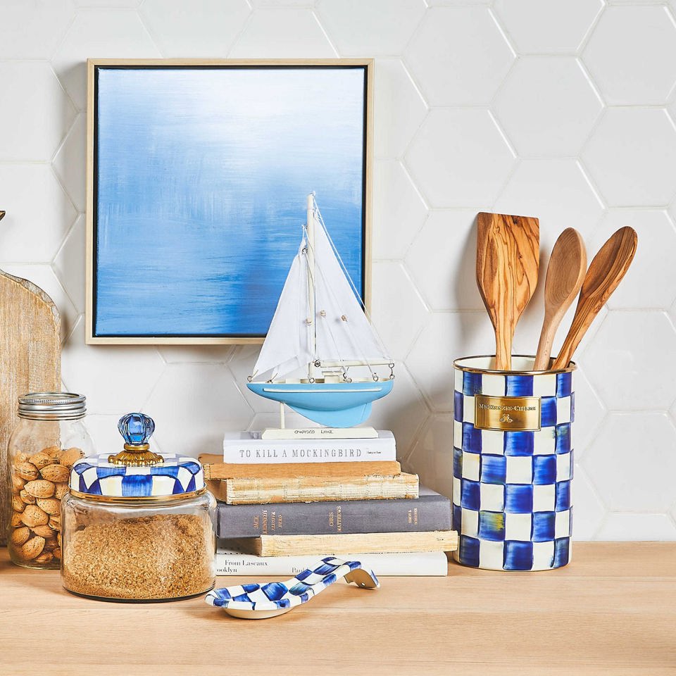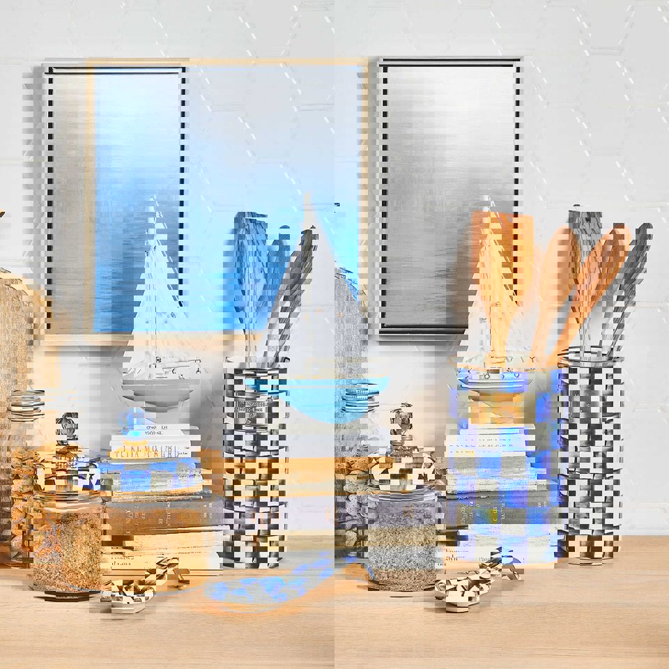 Extra-tall Royal Check Utensil Holder is the perfect container for everything from slotted spoons to crafting tools, and you’ll be hard-pressed to find a decor not complemented by the fresh, clean pattern.