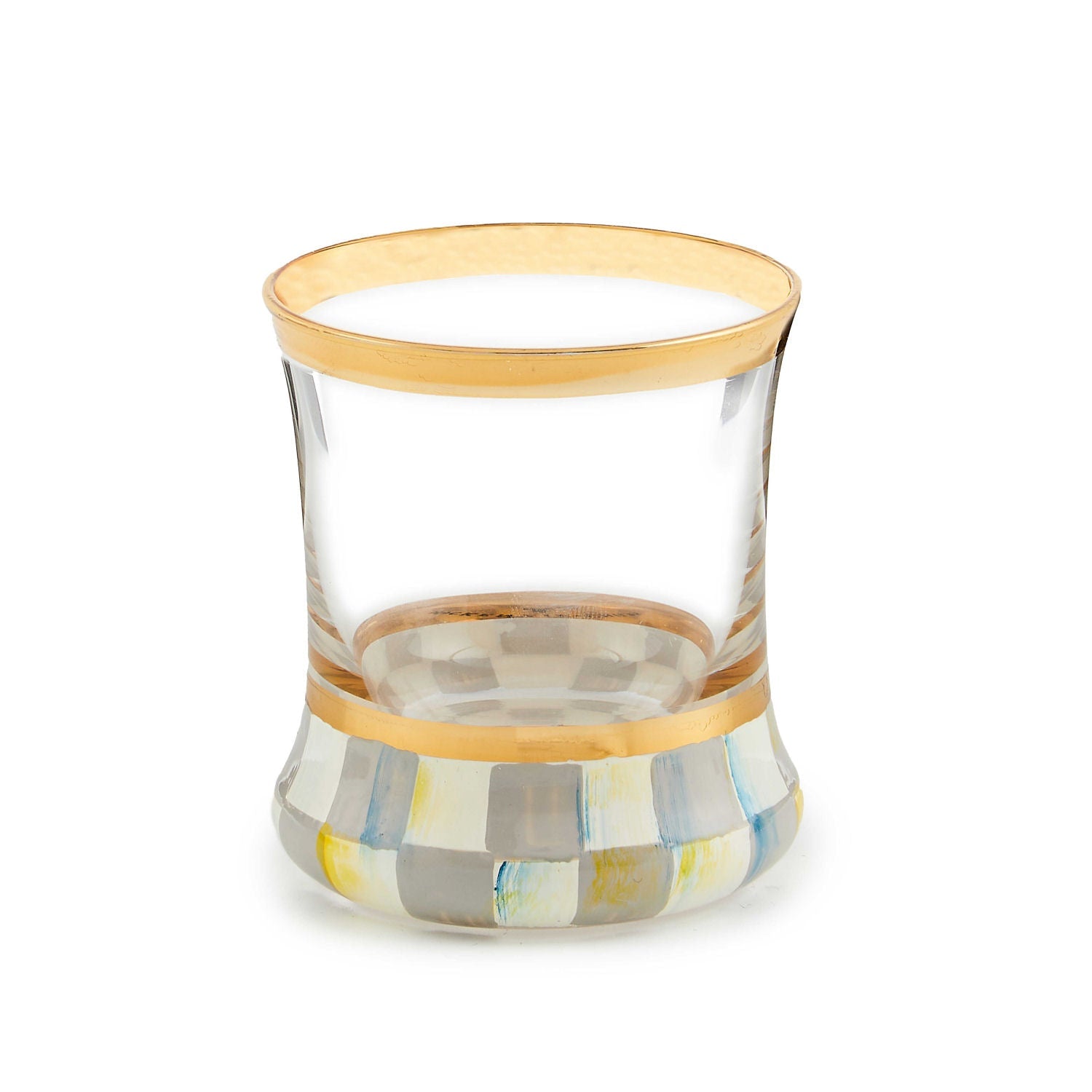 Bottoms up with our hand-painted Sterling Check® Shot Glass. This mouth-blown glass, featuring a base of Sterling Check, is trimmed with gold lustre.