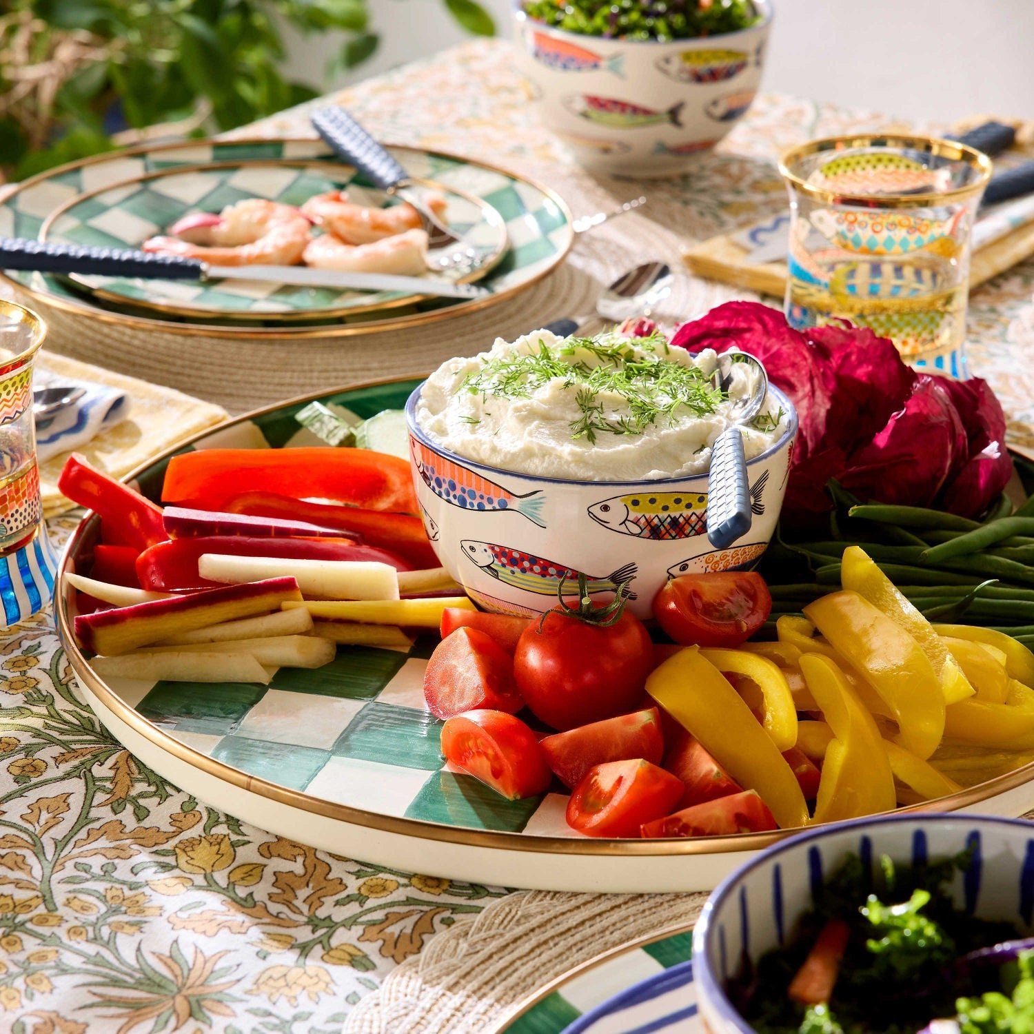Handy as it is handsome, the Emerald Check Round Tray is perfect for year-round use, indoors and out. A subtle palette is woven by an artisan’s brush through the hand-painted green checks.