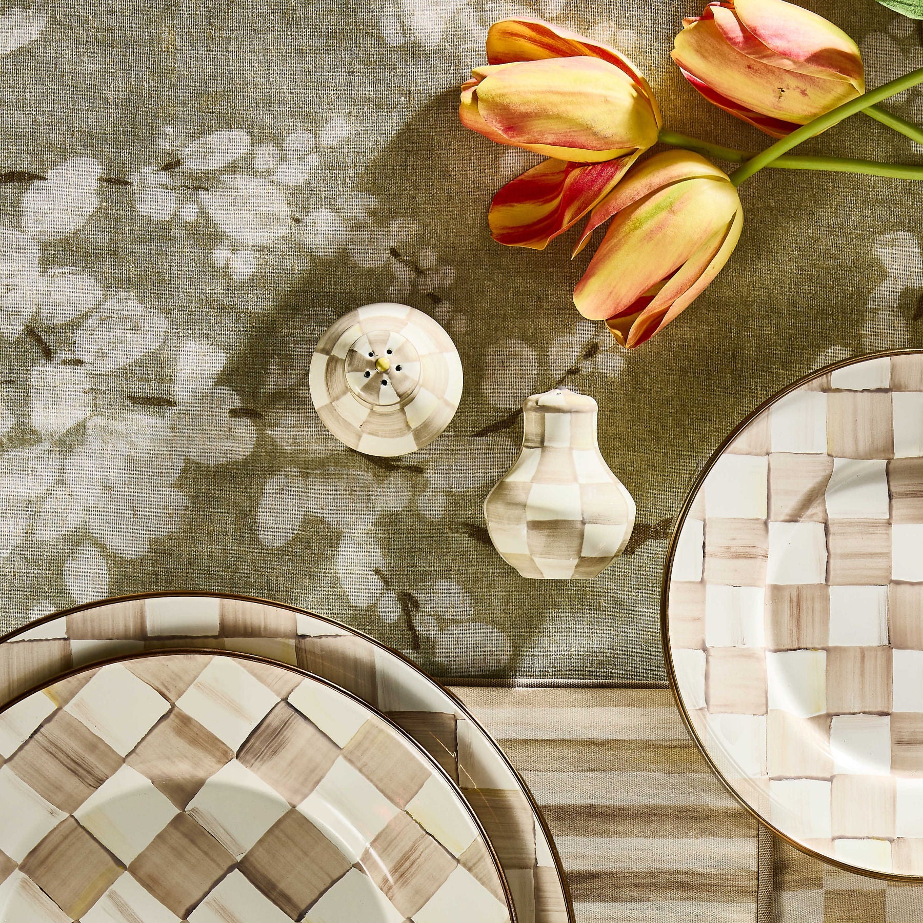 MacKenzie-Childs Mocha Check Salt & Pepper Shakers