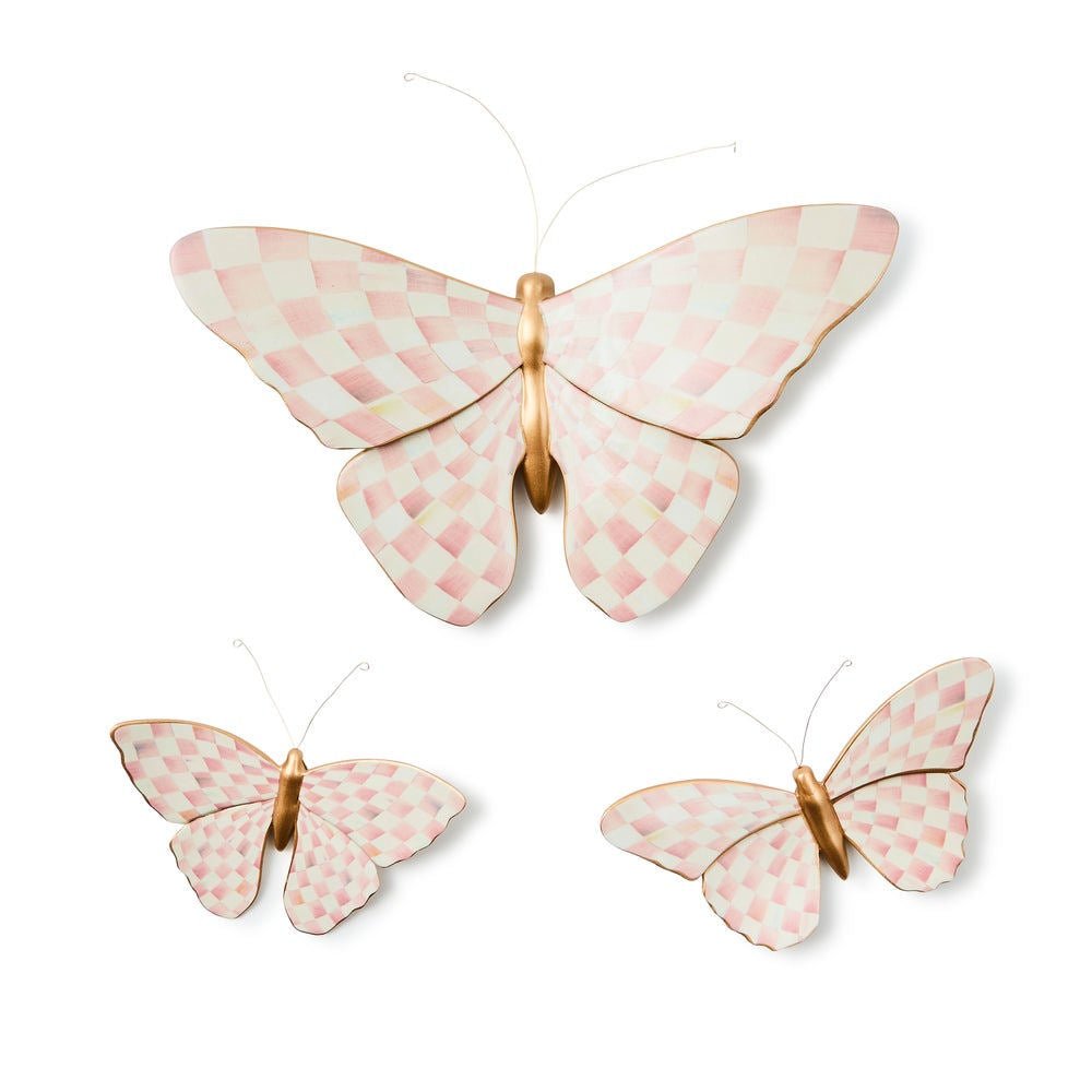 The Rosy Check® Wall Décor Butterfly Duo features a pair of winged wonders with transfer decoration of our pink checks on their gold-edged wings, topped with wire antennae. Pair them with the larger Rosy Check® Wall Décor Butterfly.
