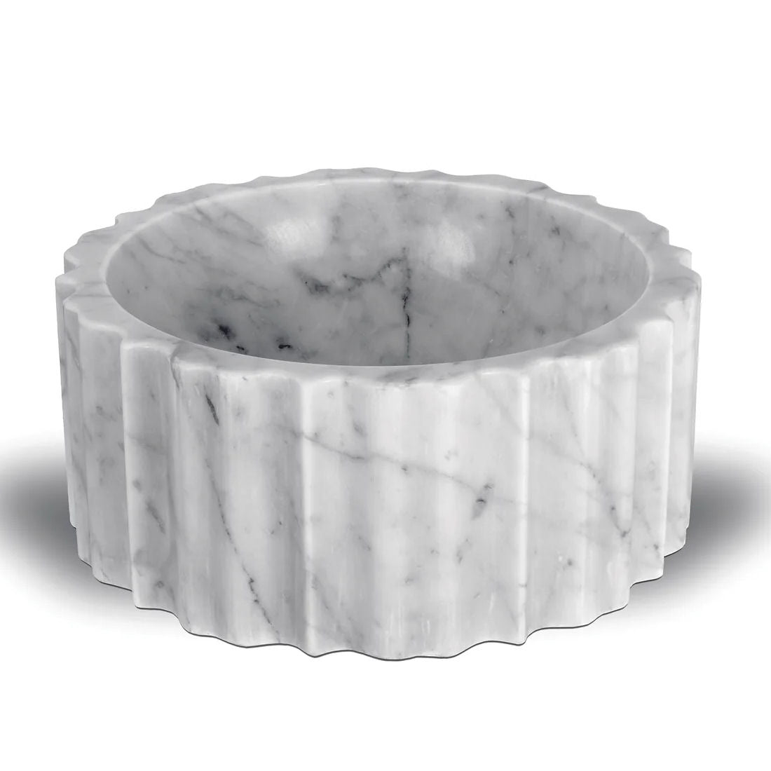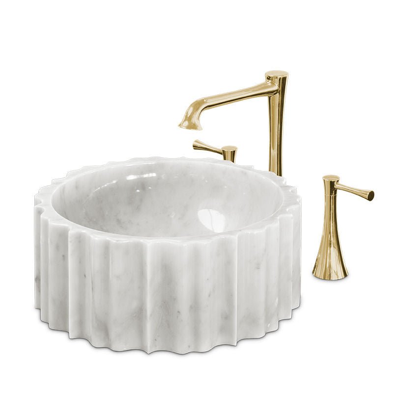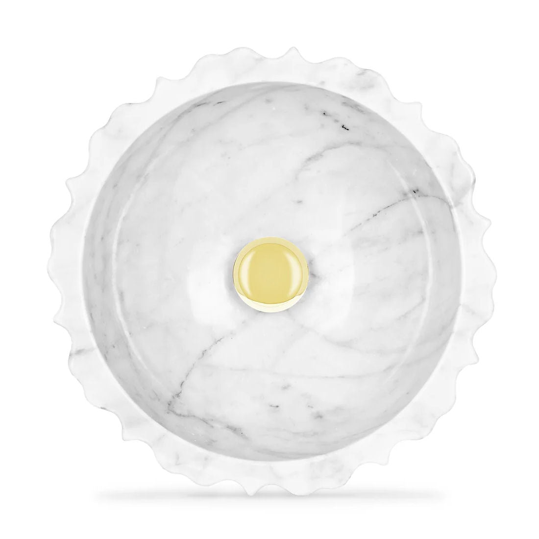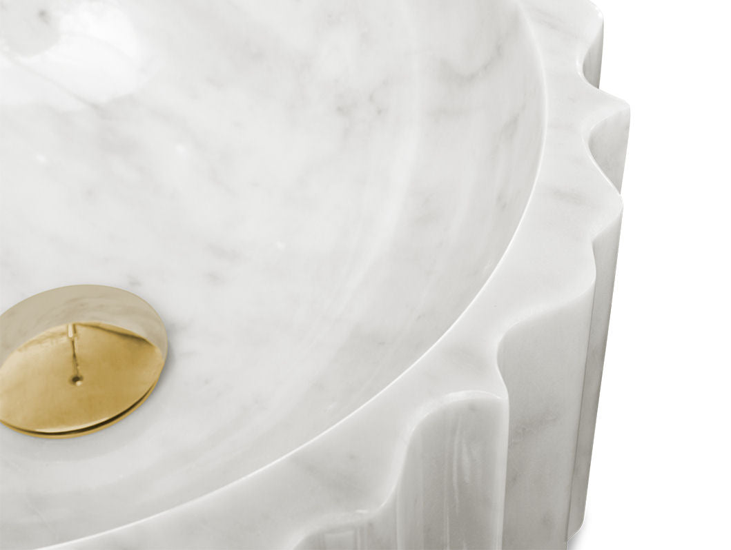 The cogwheel-shaped design of this vessel sink stands out for its contemporary design. Available in three different marbles, you are able to take your bathroom interior design to a completely new level by combining it with endless colors while adding a touch of elegance and mystery to an oasis you wish to build.